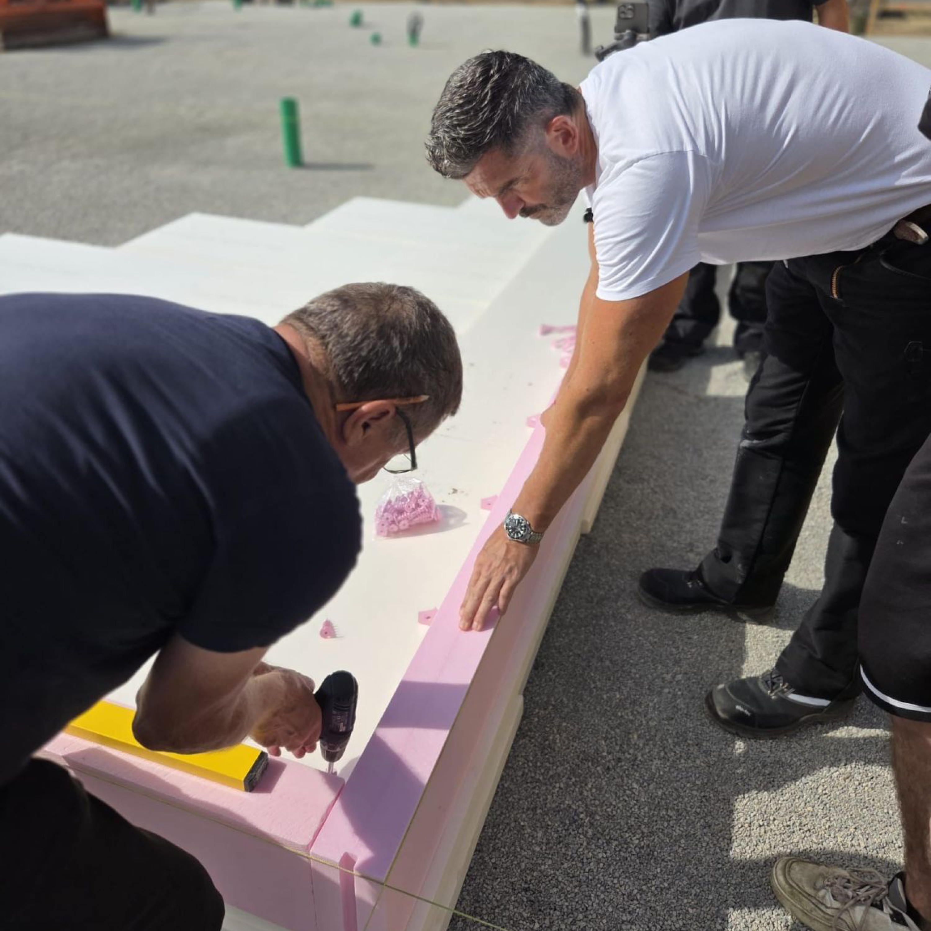 Vor Ort erläuterten wir die verschiedenen Ausführungsvarianten sowie unser spezielles XPS-Absatzprofil. Unser Techniker Steve Wienke zeigte Schritt für Schritt, wie die Abdichtung nach DIN 18533 fachgerecht umgesetzt wird. Effizient, sicher und praxisnah – das ist unser Anspruch.