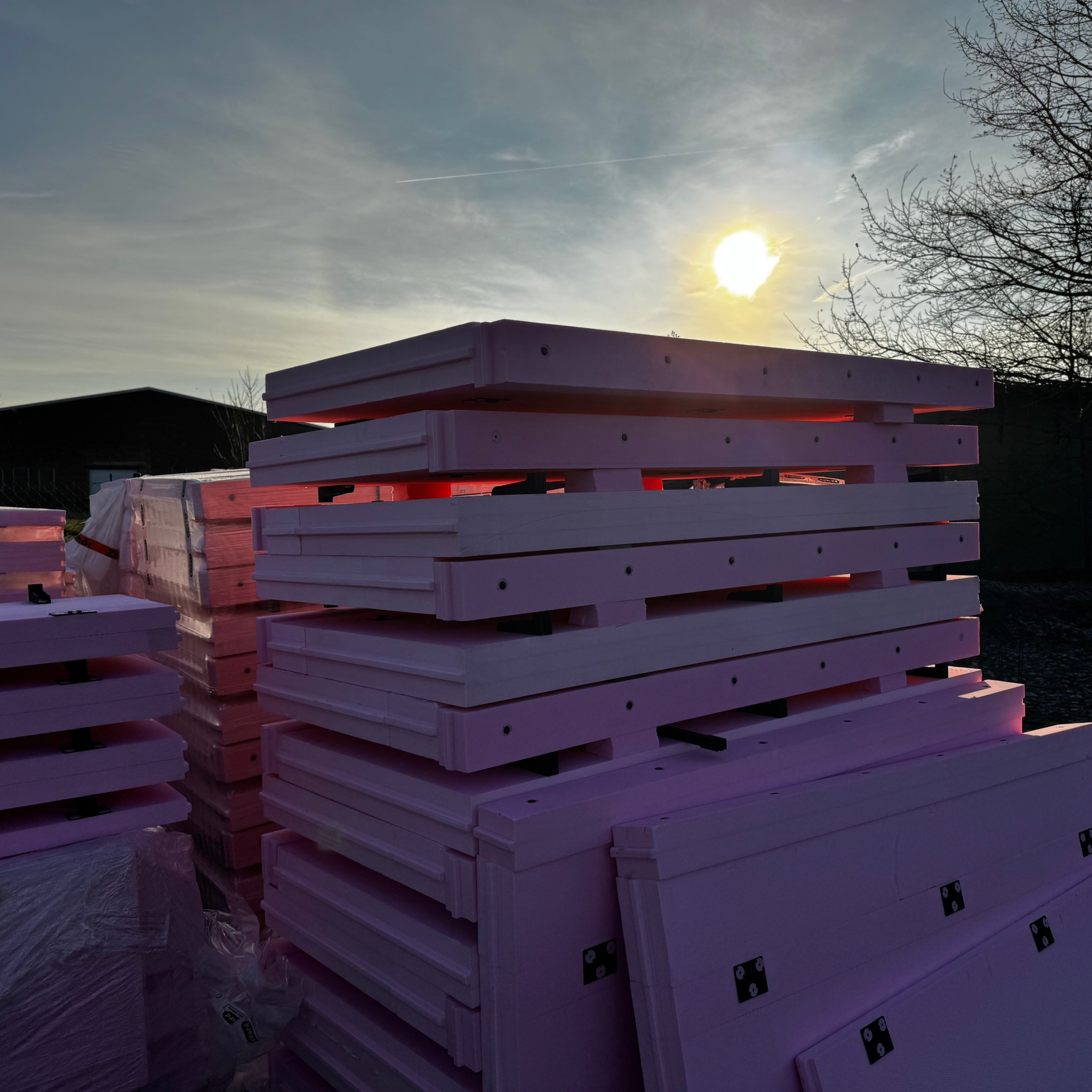 Geliefert wurde das Material durch unseren Partner team baucenter GmbH & Co. KG. Mit Aufdruck und QR-Code zu den Verarbeitungsrichtlinien stehen alle relevanten Informationen direkt auf der Schalung zur Verfügung.