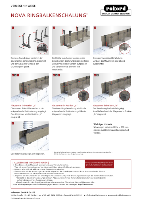 | Abnahmemenge | Nur volle VE (1 VE = 12 m Schalung) |